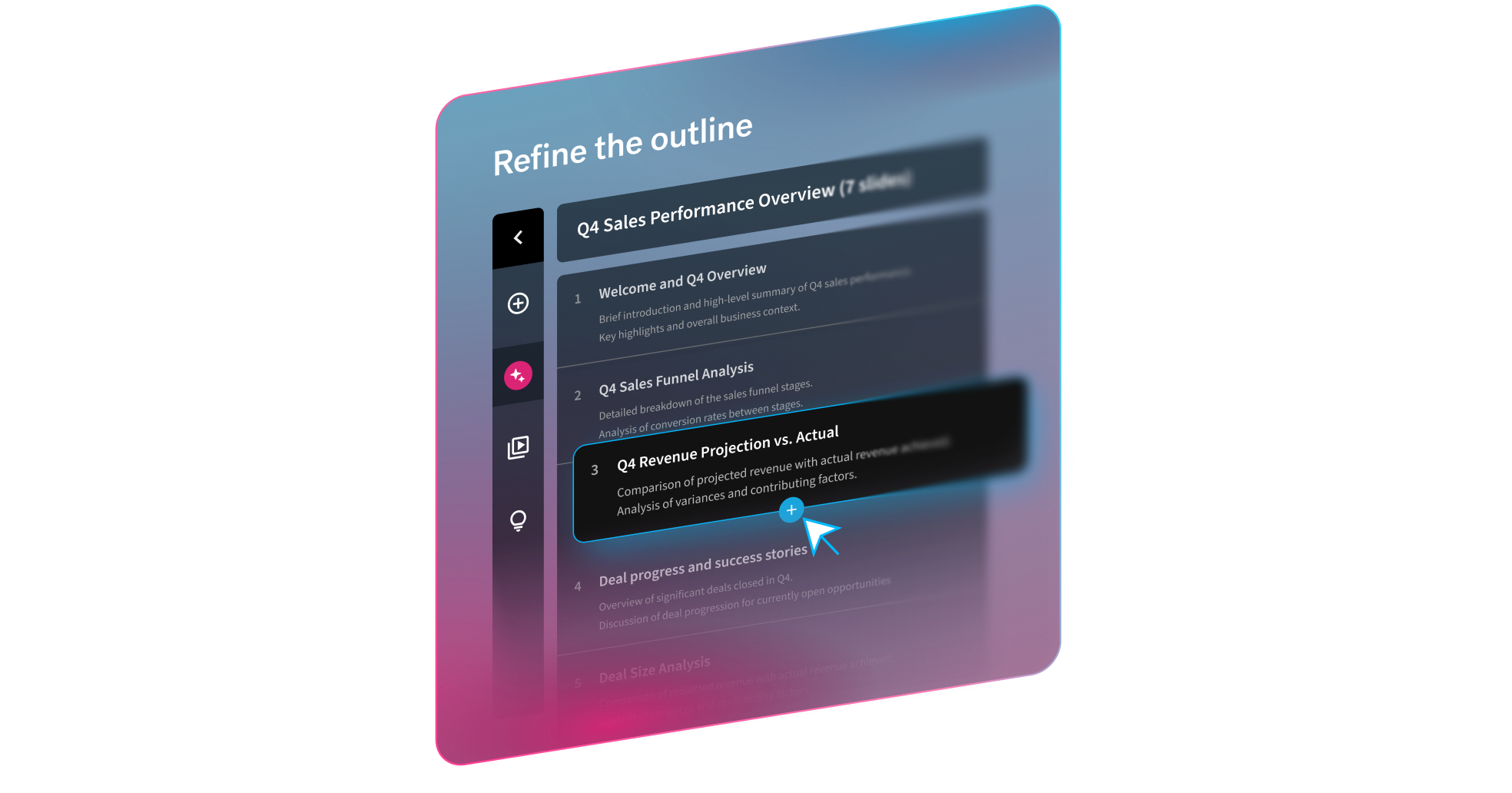 Discover AI that creates what you asked for. Our new AI presentation workflow is smarter, faster, and more flexible. Get to work-ready slides, 10x faster.